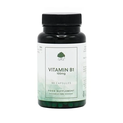 PURE VITAMIN B1 THIAMINE: Each vegetable capsule provides 100mg of pure vitamin B1 thiamine hydrochloride. WHY THIAMINE HYDROCHLORIDE?: There are two common forms of thiamine used in vitamin B1 supplements: thiamine hydrochloride (HCL) and thiamine mononitrate. Most supplement companies avoid using thiamine hydrochloride because of its more complex and time-consuming manufacturing process. However, at G&G, we are dedicated to using this form for its superior effectiveness. WHAT DOES VITAMIN B1 DO?: Vitamin B1 contributes towards a healthy diet in many ways. Vitamin B1 contributes to normal function of the nervous system, heart, normal psychological function and normal energy-yielding metabolism. WHY CHOOSE G&G?: At G&G, we manufacture all our own supplements. By maintaining complete control over the production process, we ensure that you receive the highest quality supplements possible. SUITABLE FOR VEGANS: This supplement is suitable for vegans, non-GMO, and free-from artificial colourings and preservatives. MANUFACTURED IN THE UK: Manufactured in our own Sussex-based cleanroom, running off of green energy. All our products are made to the highest British manufacturing standards.