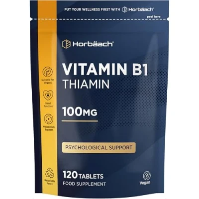 Vitamin B1 Thiamine High Strength 100mg 120 Vegan Tablets No Artificial Preservatives by Horbaach
