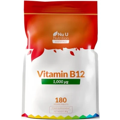 HIGH BIOAVAILABILITY - Our premium Vitamin B12 uses only the highest quality ingredients for improved bioavailability. Each serving provides 1000mcg of pure Methylcobalamin per tablet, which is regarded as being the best form of vit B12 providing efficient and high absorption rates. Vitamin B12 contributes to a normal energy-yielding and homocysteine metabolism, the normal function of the immune system, the reduction of tiredness and fatigue and normal red blood cell formation*. (EFSA approved claims) CONVENIENT SOURCE OF B12 - Our Nu U Vitamin B12 gives a 1000mcg supply in a bio-available format that is convenient and is quickly absorbed into your body. Our tablets are designed to be easy to swallow at only 9mm in diameter. Our tablets are suitable for vegans and vegetarians. 6 MONTH SUPPLY - Our incredible 180 tablets pack gives amazing VALUE keeping you replenished with vitamin B12 for a full six months. No need to remember to reorder every month with a 26-week supply. By purchasing our supplement you can be rest assured that you are getting one of the best value for money supplements on the market. NEW ESSENTIALS RANGE OF SUPPLEMENTS - New at Nu U, our 'Essentials' range of supplements features those wellness essentials packaged in convenient pouches. Designed for quick and easy use, these compact pouches take up less room, making it easier than ever to support your daily health wherever you are. Simplify your routine and stay effortlessly prepared with our trusted essentials by your side. NU U NUTRITION STORY – Starting as a family business in 2014, we’ve expanded to offer a diverse range of high-quality supplements designed to support different lifestyles. Our mission is to make wellness simple, with premium ingredients that cater to your daily nutritional needs—whether for general health or targeted goals.