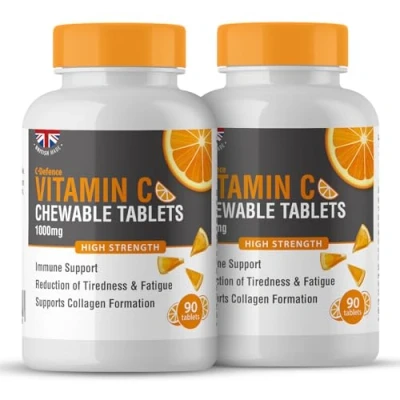 Vitamin C 1000mg Chewable 90 x 2 Supports Immune Health and Helps Fight Colds Helps Reduce Tiredness and Fatigue Brand : Club Vits Product type: VITAMIN 180 count Pack of 1 supplement