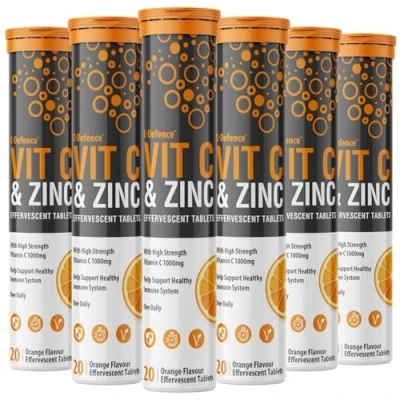 Vitamin C 1000mg & Zinc 15mg Orange Flavour Effervescent Tablets High Strength for a Healthy Immune System (6 Tubes)
