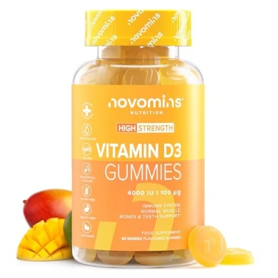 High Strength Vitamin D Gummies: Our vitamin D supplements contain cholecalciferol with no artificial colors or preservatives; Delicious mango-flavored Vitamin D3 gummies are Non-GMO; 60 gummies per pack Vegetarian and Gluten Free Vitamin D3: Our D3 vitamins are vegetarian, cruelty-free, and gluten-free in convenient chewable form; Vitamin D gummies make taking your daily vitamins more enjoyable than tablets Healthy Bones, Teeth & Muscles: Vitamin D contributes to normal bones, teeth, muscle function, and immune system function; Take two gummies daily or one for 2000 IU Delicious Mango Flavour: These chewable D vitamin gummies offer a simple and tasty way to supplement your vitamin D3 intake; Particularly beneficial during autumn and winter when sunlight is limited; Hassle-free supplementation Quality Assurance: Third-party tested gummies; Made with ethically sourced and easily digestible ingredients; Convenient gummy format for daily supplementation
