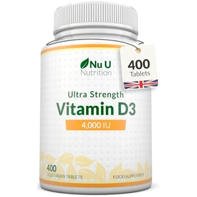 X4 STRENGTH D3 - Our extra high strength Vitamin D3 4000 IU supplement is one of the most powerful formulations available. Each of the small, 7mm tablets are packed with 100 mcg of Vitamin D which is around FOUR TIMES the strength of those Vitamin D products that are 1000 IU and you only have to take one tablet! Easy to swallow, for a quick and convenient way to supplement your Vitamin D levels on a daily basis. 13+ MONTH'S SUPPLY - We are one of the only brands to offer you more than a full year’s supply of vegetarian Vitamin D3 tablets. Each of our bottles contains 400 servings to last you more than 13 months. You won’t have to worry about running out each month or reordering with our incredible value for money tablets. Our tablets are suitable for vegetarians and contain no GMO ingredients or allergens such as gluten, lactose or soy. BOTTLED SUNSHINE - Vitamin D is an essential nutrient for our overall health and wellbeing. We know that exposure to sunlight is the most common source of obtaining it but it can be difficult to maintain levels, particularly in the colder months, which is why the NHS recommends supplementing during Autumn and Winter. Our Vitamin D3 from cholecalciferol is the same form of Vit D your skin cells produce naturally when exposed to sun, making it FOR IMMUNE & BONE HEALTH - Vitamin D is a wonderful nutrient that helps to keep our immune system defences in balance. It contributes to the normal function of the immune system as well as to the maintenance of normal bones, teeth, muscle function and the normal absorption/utilisation of calcium and phosphorus* which are all important to maintaining our overall health and wellbeing. Our Vitamin D is made in the UK to current GMP standards and meets stringent UK/EU legislation and testing. THE NU U NUTRITION STORY - TRUSTED SUPPLIER OF NUTRITIONAL SUPPLEMENTS - Starting as a family business, we’ve expanded to offer a diverse range of high quality supplements designed to support different lifestyles. Our mission is to make wellness simple, with premium ingredients that cater to your daily nutritional needs, whether for general health or targeted goals.