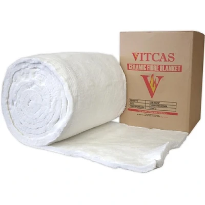 VITCAS Ceramic Fibre Blanket. Resistant to maximum service temperature of 1260oC / 2300oF. Density of 128kg/m3. Available in thickness of 13mm, 25mm and 50mm. Can be utilised in many industries such as petrochemical, steel and ceramics industries. Often used as insulation or for lining of furnaces.VITCAS Ceramic Fibre Blanket has a density of 128kg/m3 and a maximum service temperature of 1260oC / 2300oF. Thermal insulation blanket is used in kilns and furnaces as part of the lining or as an expansion joint as well as a high temperature insulation material in industrial processes. Thermal insulation blanket - Characteristics: high temperature resistance low thermal conductivity quick to repair asbestos free sound damping properties no curing or drying needed Applications: ceramics steel industry petrochemicals and refining power generation fire protectionTechnical Specification:Product Group Textiles Color White Indoor Yes Temperature 1260°C /2300°F Manufacturer Vitcas Insulation Yes Material Ceramic Fibre HS Tariff Code 6806100000