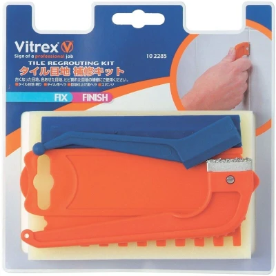 General description This tile re-grouting kit is designed to refresh the appearance of tiled surfaces by removing cracked or discolored grout. It provides all necessary tools to easily and quickly restore your tiles' look. Technical specifications Includes: grout rake Combination spreader/squeegee Grout finisher Sponge Compatibility and accessories Suitable for use on various types of tiles and grout surfaces. Installation Use the grout rake to remove old grout from between tiles. Apply new grout and spread evenly with the combination spreader/squeegee. Finish the grout lines with the grout finisher for a smooth appearance. Clean the surface with the sponge. Usage Ideal for renewing tiled surfaces in kitchens, bathrooms, and other areas. Easy to handle and suitable for DIY projects.