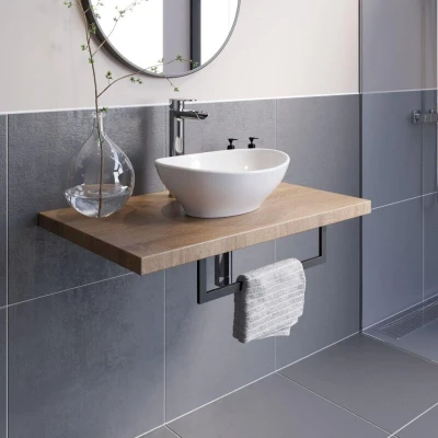 General description With our Vitusso vanity units, you won't need to worry about form or function because these gorgeous vitreous china basins are the perfect blend of both. The oval shape of the basin is purpose-made for the vanity unit, creating a harmonious combination. The vanity units feature a luxurious wood finish that showcases advanced material technology, offering an embossed texture and a real sense of quality. Underneath the waterproof melamine veneer is durable particleboard, making it ideal for wall hanging due to its low weight. Technical specifications Vanity unit width: 600mm Basin dimensions: 405mm oval Installation Fully assembled and ready to mount to your wall Towel rail needs to be attached to the countertop Usage Designed to prevent water from dripping on the floor or splashing on the wall Convenient towel rail fitted underneath for easy hand drying