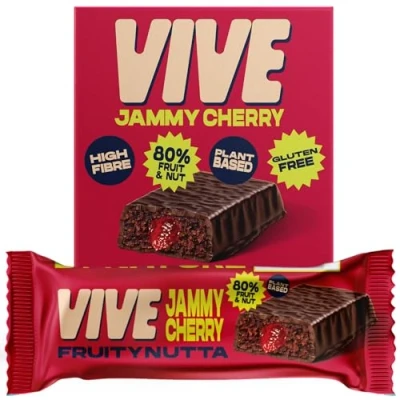 Vive Fruity Jammy Cherry Nutta Bar Fruit Jam Filled Vegan Healthy Snack Pack of 20