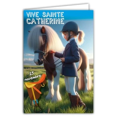 Vive Sainte Catherine 25th November Party Little Girl Horse Riding Pony Club Card with White Envelope Size 12 x 17 cm Interior Space for Writing Made in France
