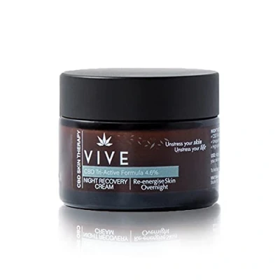 NIGHT RECOVERY FACE CREAM: Helps managing the effects on skin of lower estrogen levels in your cells, caused by perimenopause and menopause rapidly hydrating and strengthening skin ENERGISE YOUR SKIN: Designed to re-energise skin through the night. By morning the result is a recovered, smooth and re-energized skin STRENGTHEN YOUR SKIN: Promote elasticity, reduces the appearance of blotchiness and pigmentation, and strengthen skin barriers CLINICALLY PROVEN FOR MENOPAUSAL AND PERIMENOPAUSAL SKIN: The CBD Tri-Active combination demonstrated significant protection of skin cells from damage caused by UV light & chemical agents. Moisturisation actives formula was proven to both significantly strengthen skin barriers and significantly improve hydration VIVE - UNSTRESS YOUR SKIN, UNSTRESS YOUR LIFE: We believe healthy, happy skin is central to a stress-free life. No frills: just science. Vive skincare products use best-in-class ingredients to build deep hydration and moisturisation alongside antioxidant power in relevant moments like perimenopause and menopause