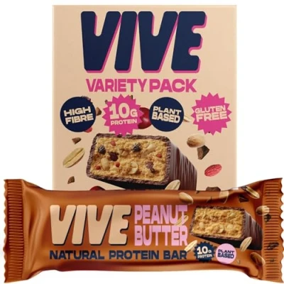 Vive Vegan Protein Bars Variety Pack Dark Chocolate Coated, High Fibre Snacks of 12