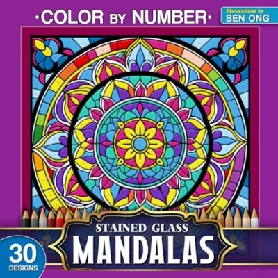 Vivid Mandalas Stained Glass Color by Number: 30 Exquisite and Relaxing Designs for Mindful Coloring