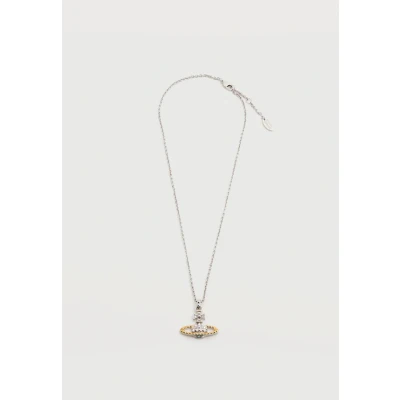 Get in touch with your inner rebel with the help of this stylish Vivienne Westwood necklace. Crafted in a silver tone, this necklace features the iconic Vivienne Westwood orb logo in a two-toned style with white iridescent pavé crystals. A beautiful choice, this necklace would make a great gift. Silver tone Two toned orb motif Crystal details Length: 47cm