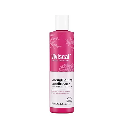 Viviscal Strengthening Hair Conditioner contains hair building blocks Biotin and Keratin, fortified with Marine Collagen and Seaweed extract, to deliver nourishing hydration without weighing hair down The anti-frizz formula gently moisturises, conditions and strengthens, leaving hair looking naturally shiny, thicker and fuller. Use with Viviscal Hair Thickening Shampoo and Serum (sold separately) Use Viviscal Conditioner for a volumising finish with a fresh fragrance. Paraben-free, SLS-free, SLES-free haircare, ideal for daily use The Viviscal brand is supported by over 25 years of research and development and 7 published clinical trials. The ideal shampoo for dry hair, fine hair, curly hair, thinning hair, oily or normal hair Discover the range of Viviscal hair supplements for women and men, plus Viviscal shampoo and conditioner, serums, multi vitamins and accessories to encourage strong, healthy-looking hair