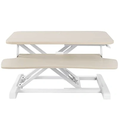 VIVO 66cm DESK Converter, K Series, Height Adjustable Sit to Stand Riser, Dual Monitor and Laptop Workstation with Keyboard Tray, Light Wood Top, White Frame, V026KF
