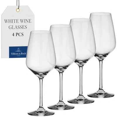 Extremely versatile: the bulbous glasses are ideal for wine or cocktails and the tall glasses for champagne or other sparkling wine Clean lines: this subtle glass design has a minimalist charm which is perfect for all kinds of combinations Lovely gift idea: this glassware set makes an excellent gift for family, close friends and anyone who loves classic design Premium quality: these elegant crystal glasses are a pleasant thickness, making them a joy to use Contents: 1x vivo by Villeroy & Boch Group Voice Basic white wine glass set, 4x white wine glass, weight: 640 g (art. no. 19-5300-8122)