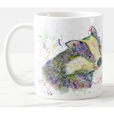 Vixar Badger Watercolour Rainbow British Wildlife Art Coloured Mug Cup Gift Birthday Work Office Christmas Tea Coffee (White)