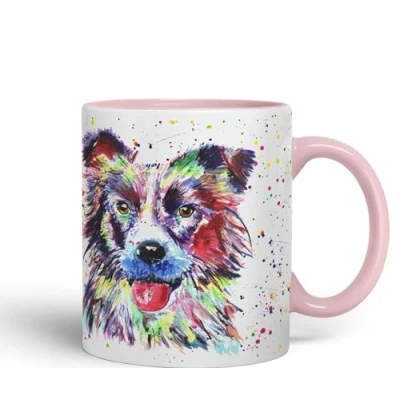 Vixar Border Collie Dog Pet Animals Watercolour Art Coloured 330 ml Mug Cup Gift Birthday Work Office Tea Coffee (Pink)