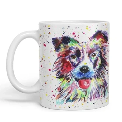 Vixar Border Collie Dog Pet Animals Watercolour Art Coloured 330 ml Mug Cup Gift Birthday Work Office Tea Coffee (White)