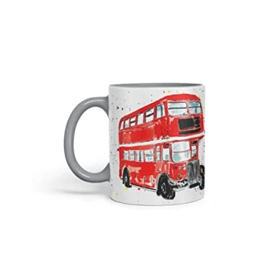 Vixar Bus Classic London Busses Red Watercolour Art Coloured Mug Cup Gift Birthday Work Office Tea Coffee (Grey)