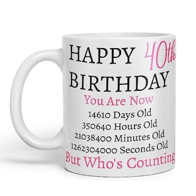 Vixar But Who's Counting Happy 40th Birthday Ceramic Coloured Mug Cup Gift Days Hours Minutes (Pink) (White)
