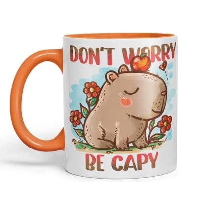 Vixar Capybara Don't Worry Be Capy Kawaii Joke Coloured Ceramic Mug Cup Gift 330ml 11oz Work Office Tea Coffee (Orange)