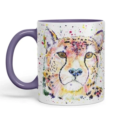 Vixar Cheatah Big Cat Safari Animals Watercolour Ceramic Coloured Mug Cup for Tea Coffee Hot Brew 330ml 11Oz Gift (Purple)