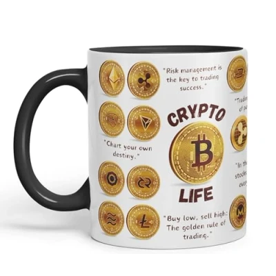 Vixar Crypto Life Currency Trading Ceramic Coloured Mug Cup for Tea Coffee Hot Brew 330ml 11Oz Gift (Black)