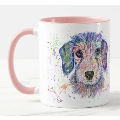 Vixar Dachshund Wire haired Sausage Tecle Dog Pet Watercolour Art Coloured Mug Cup Gift Birthday Work Office Christmas Tea Coffee (Pink)