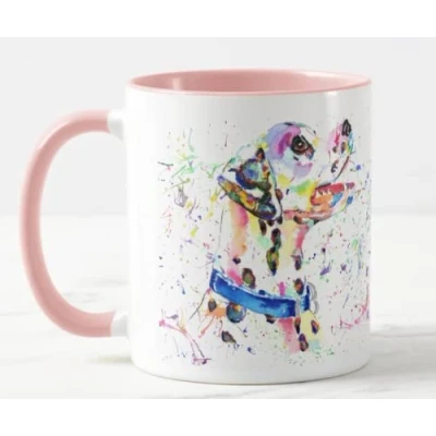 Vixar Dalmation Dog Pet Watercolour Rainbow Art Coloured Mug Cup Gift Birthday Work Office Christmas Tea Coffee (Pink)