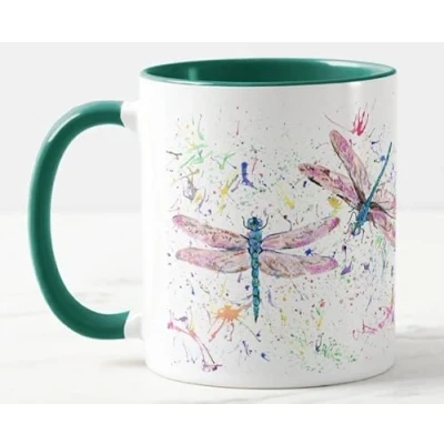 Vixar Dragonfly Dragonflies Watercolour Art Coloured Mug Cup Gift Birthday Work Office Christmas Tea Coffee (D Green)