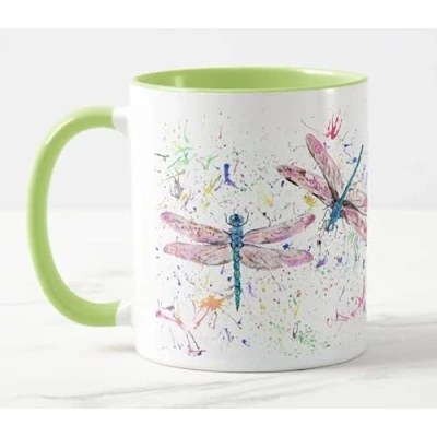 Vixar Dragonfly Dragonflies Watercolour Art Coloured Mug Cup Gift Birthday Work Office Christmas Tea Coffee (L Green)
