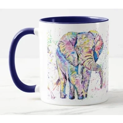 Vixar Elephant Forward Facing Adult Wild Animal Watercolour Art Coloured Mug Cup Gift Birthday Work Office Christmas Tea Coffee (Navy)