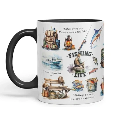 Vixar Fishing Life Fish Hobby Ceramic Coloured Mug Cup for Tea Coffee Hot Brew 330ml 11Oz Gift (Black)