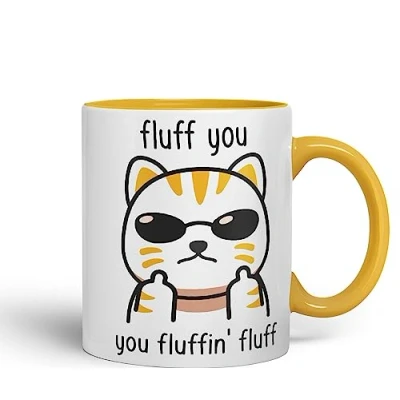 Vixar Fluff You Cat Joke Adult Ceramic Mug Coloured Cup Gift Tea Coffee Christmas Office Home (G Yellow)
