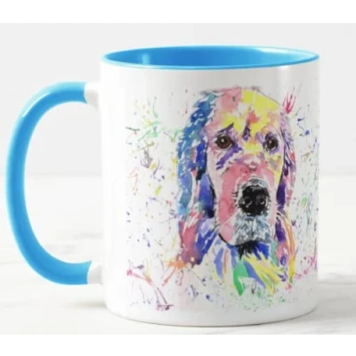 Vixar Golden Retriever Dog Pet Watercolour Rainbow Art Coloured Mug Cup Gift Birthday Work Office Christmas Tea Coffee (L Blue)