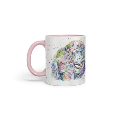 Vixar Gorilla Ape Monkey Animals Watercolour Art Coloured Mug Cup Gift Birthday Work Office Tea Coffee (Pink)