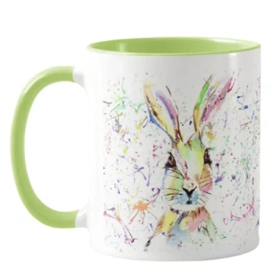 Vixar Hare Bunny Rabbit Watercolour Rainbow Art Coloured Mug Cup, Gift, Birthday, Work, Office, Christmas Tea Coffee (L Green)