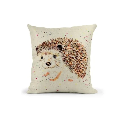 Vixar Hedgehog British Wildlife Hand Painted Watercolour Art Linnen Cushion With filling or cover only, 40x40cm, gift, christmas, Birthday (Cover Only)