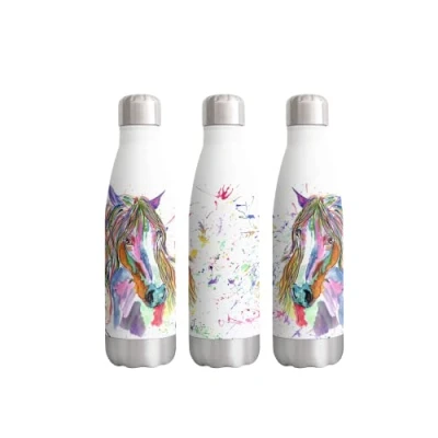 Vixar Horse Watercolour Farm animals rainbow art Bottle double Wall insulated Stainless steel sport Drinks 500ml WHITE Gift ideal for school work office Oudoor sports keeps Hot and Cold