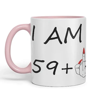 Vixar I am 59 + 1 Woman Hand Ceramic 330 ml, 11oz Coloured Mug Cup Gift Coffee Tea Happy Birthday Turning 06 Years Old as a Joke Celebration 60th idea (Pink)