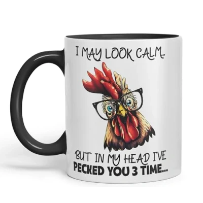 Vixar I May Look Calm.. Chickens Sarcastic Joke Ceramic Coloured Mug Cup for Tea Coffee Hot Brew 330ml 11oz (Black)