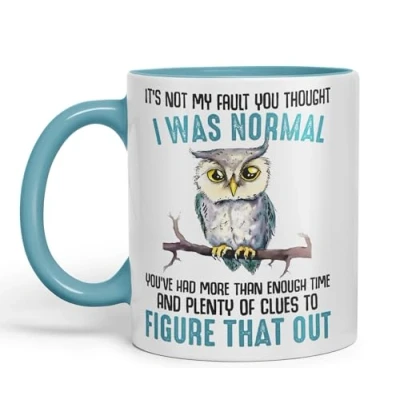 Vixar It's Not My Fault YouThought I was Normal, Owl Sarcastic Joke Ceramic Coloured Mug Cup for Tea Coffee Hot Brew 330ml 11Oz (Turquoise)