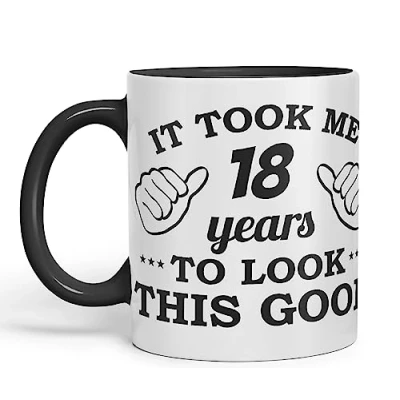 Vixar It Took me 18 Years to Look This Good Happy Birthday Ceramic Coloured Mug Cup Gift Coffee Tea (Black)