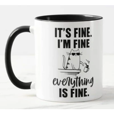Vixar Its fine I'm Everything is Cat Joke Coloured Mug Cup Gift Birthday Work Office Christmas Tea Coffee (Black)