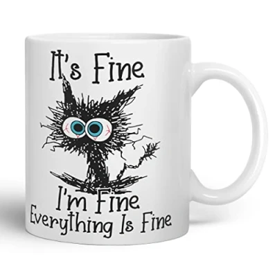 Vixar Its fine I'm Everything is Cat Joke Coloured Mug Cup Gift Birthday Work Office Christmas Tea Coffee (White)