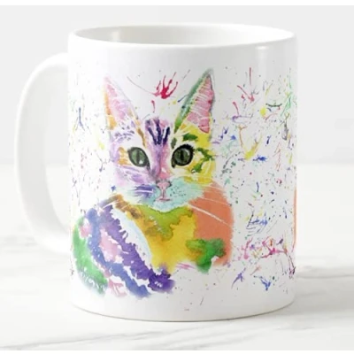Vixar Kitten Cat Watercolour Rainbow Art Coloured Mug Cup, Gift, Birthday, Work, Office, Christmas Tea Coffee (White)
