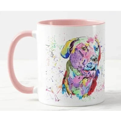 Vixar Labrador Dog Gundog pet Watercolour Rainbow Art Coloured Mug Cup Gift Birthday Work Office Christmas Tea Coffee (Pink)