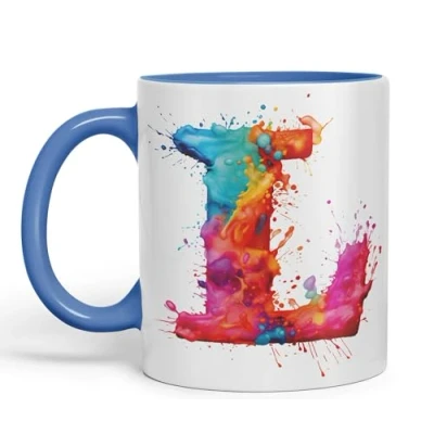 Vixar Letter L Mug, Alphabet Monogram Watercolour Ceramic Coloured Mug Cup for Tea Coffee Hot Brew 330ml 11Oz Gift (C Blue)