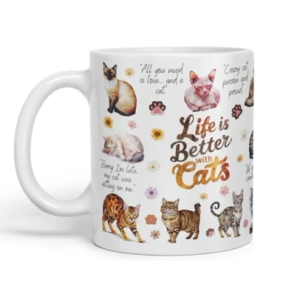 Ideal gift for cats lovers Brilliant 11oz Ceramic Mug, Great present for family members, friends and workmates on Birthday, Graduation, Christmas, Mothers day, Anniversary, ideal for women, girl, fiancée Design is printed on both sides, Weight: 0.992080179 Pounds, Manufacturer: Vixar
