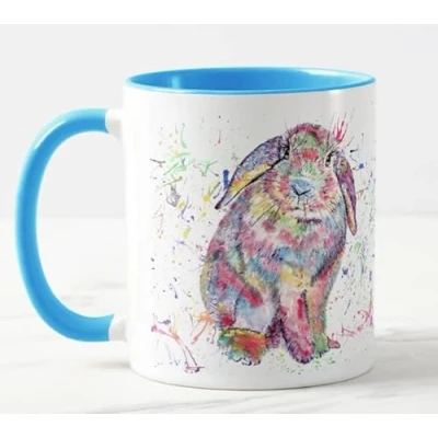 Vixar Lop Rabbit Bunny Eared Watercolour Rainbow Art Coloured Mug Cup Gift Birthday Easter Work Office Christmas Tea Coffee (L Blue)